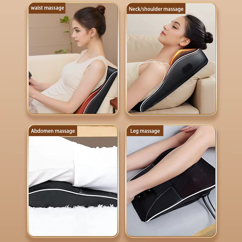Designed for both home and car use, this ergonomic massage pillow is portable and easy to use, making it perfect for office workers, drivers, or anyone looking for a quick and effective way to relax anytime.